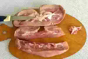 2. Вымоченные почки становятся светлыми. Разрезать их на четвертинки, удалить жир.