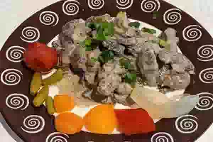 Как приготовить "Жареная говядина с грибами и сметаной"