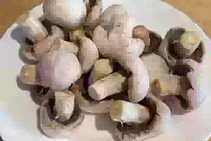 2. Грибы почистить и порезать пластинами. Измельчить лук.