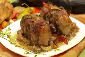 10. Тушить при 170С 3 часа, периодически проверяя уровень жидкости в рагу. В готовом рагу мясо легко отделяется от кости. Готовые тушеные бычьи хвосты по-андалузски подавать на стол без гарнира. Вкусно!