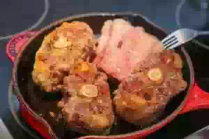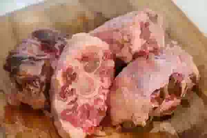 1. Бычьи хвосты, разрезанные по суставу на куски (как на фото), вымыть, обсушить на бумажных полотенцах, посыпать солью и черным молотым перцем. Втереть соль с перцем в мясо.