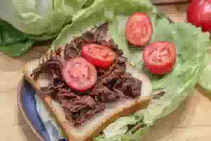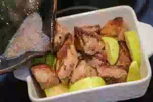 Рваная говядина с печеным чесноком и яблоками