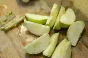 3. Яблоко разрезать на крупные дольки, удалить сердцевину.