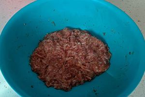 2. Все хорошо выместить вручную, отбивая о дно миски, до однородного состояния. Фарш должен стать вязким, тогда зразы не будут лопаться при жарке.