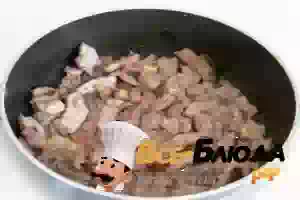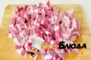 1. Свинину нарежьте маленькими кубиками или брусочками.