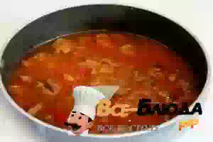 6. Вливаем кипяченую воду, чтоб покрылось все мясо. кладем лавровый лист, варим 25-30 минут под крышкой. Подлива должна загустеть, а мясо стать мягким.