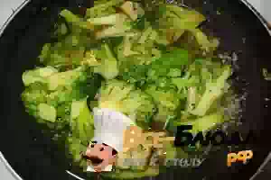 1. Брокколи выложить на сковороду, обжарить на среднем огне до мягкости. Остудить.