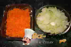 2. Лук мелко порезать, морковь натереть на крупной терке.