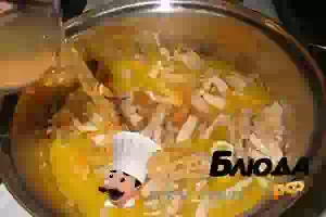 7. В кастрюлю положить лук с морковью.