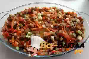 12. Присыпать сверху тёртым сыром. Ставим в разогретую духовку до 170 градусов на 40-45 минут. Можно сначала поставить овощи с сердечками в духовку, за 15 минут до готовности присыпать блюдо уже сыром.