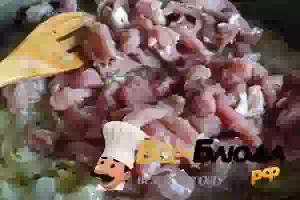 5. Добавить мясо. Хорошо перемешать и довести до готовности мяса, так как использую вырезку, то она готовится очень быстро, минут 10-12.