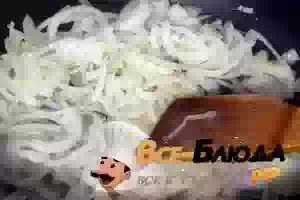 5. Отдельно в сковороде разогреть растительное масло и начать обжаривать лук репчатый до прозрачности.