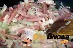 12. Добавить к блюду картофель "фри" ещё раз перемешать блюдо, и выключить огонь.