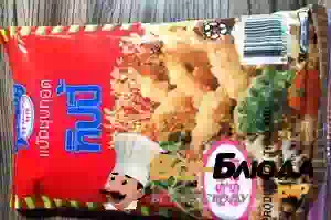 4. К полпачки панировки добавить 100 мл воды, чтобы получилась смесь густоты сметаны. Опустить креветки в подготовленную панировку и обжарить во фритюре до появления золотистой корочки.