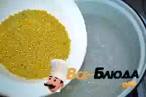 1. Промыть пшено. Вскипятить воду и засыпать туда крупу. Варить на среднем огне приблизительно 15 минут. Посолить по вкус.