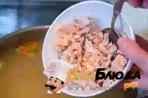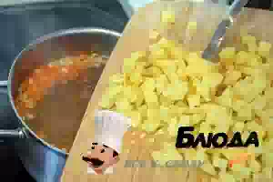 6. Спустя 10 минут положить в кастрюлю с супом картофель.
