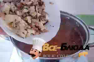 7. Кастрюлю вновь поставить на огонь, бросить туда картофель и помидоры.