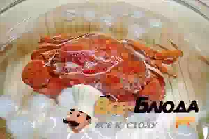 1. Чтобы краб не мучился во время варки, его рекомендуется предварительно заморозить.