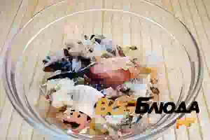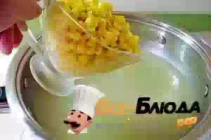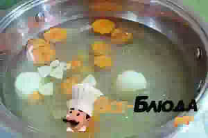 7. В чистый бульон влить крахмал и хорошо размешать.