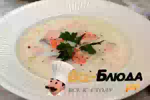 Сырный суп с семгой и креветками