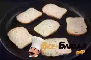 10. Хлеб порезать тонкими ломтиками и обжарить на сухой сковороде, на небольшом огне.