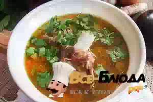 5. Можно собирать суп. На дно кастрюли сложите баранину.