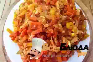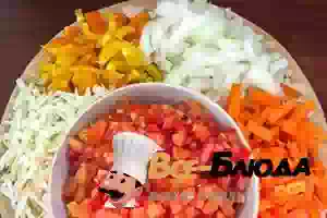 2. Лук, морковь, перец, сельдерей, помидоры измельчите.