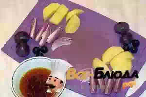 1. Нут замочить в холодной воде накануне (за сутки). Щепоть шафрана залить кипятком и дать настояться. Крупно порезать картофель и лук. Алычи сейчас нет, зато есть слива и тёрн.