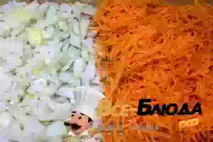 3. Снимаем шелуху с лука и мелко его измельчаем. Морковь измельчаем на средней терке.