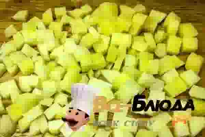 5. Очищенный от кожуры картофель нарезаем средними кубиками.