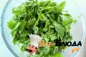 4. Молодые побеги сныти промыть, сложить в миску и залить кипятком. Оставить на 1-2 минуты.