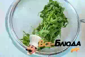 5. Откинуть зелень на сито, дать воде стечь, после чего отжать ошпаренную сныть руками.