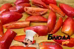 4. Чистим перец от семян и перегородок. Нарезаем толстой соломкой.