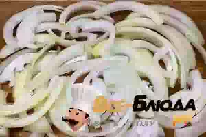 6. Очищенный от шелухи лук шинкуем толстыми полукольцами.