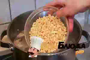 4. Засыпать в суп горох, дать бульону повторно закипеть, после чего уменьшить огонь и варить 20-25 минут, пока горох практически будет готов.