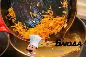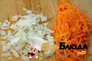 5. Морковь и лук очистить. Морковь натереть на крупной терке, лук мелко порубить.
