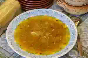 Суп с мясом и жареной пшенкой