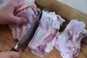 1. Нут для супа подготавливают заранее: его надо промыть, залить холодной водой и оставить на ночь. Для надежности добавьте в воду примерно 1/2 ч.л. соды. Бараньи ребрышки промыть, разрезать на несколько частей.