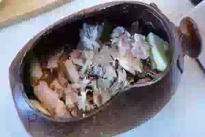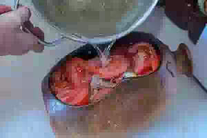 8. Бульон процедить, посолить по вкусу и залить содержимое глиняного горшка. Накрыть посуду крышкой или сложенной в несколько слоев фольгой и поставить в духовку. Готовить суп путук примерно 40 минут при 200С.