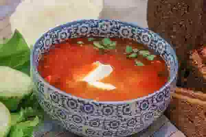 9. Следом вернуть в щи вареное мясо. Дать супу закипеть повторно, снизить нагрев и варить еще примерно 5-10 минут. Готовые щи со свининой и зеленой редькой разлить по тарелкам, добавить в каждую порцию сметану и рубленую свежую зелень.