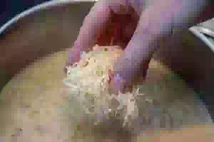 1. Подготовить все продукты для супа. Картофель вымыть, почистить и нарезать небольшими кубиками. Репчатый лук мелко нарезать. Сыр натереть на мелкой терке.