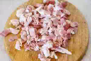 2. Бекон лучше брать целым куском, чтобы потом порезать небольшими кубиками.