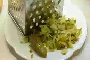 6. Добавить к пассеровке тертые огурцы, размешать. Для баланса вкуса можно посыпать 2-3 щепотками сахара.