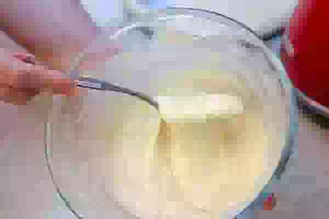 2. Пока варится бульон, замесить тесто для нокедли. Посмотреть подробный рецепт клёцек можно здесь. В миске размешивают вилкой или венчиком муку с яйцом и солью, подливая холодную воду. В результате получится однородное (без комочков), вязкое тесто, как для оладий: оно должно медленно, но уверенно стекать с ложки.