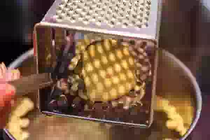 3. Клецки для бульона варят отдельно. Для этого в отдельной кастрюле довести до кипения подсоленную воду и через специальное приспособление для приготовления нокедли или через терку, как я, выкладывать столовой ложкой тесто, чтобы оно капало в кипяток. Тесто будет стекать через дырочки терки в кастрюлю с тихо кипящей подсоленной водой, и готовые клецки быстро всплывут.