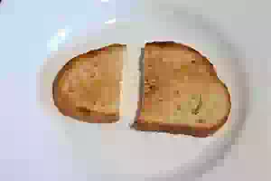 4. В сковороде, на которой жарилась ветчина, подрумяниваем с двух сторон хлеб.
