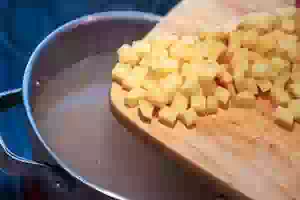 4. Через 20 минут засыпать картошку. Варить на слабом огне еще 20 минут после закипания супа.