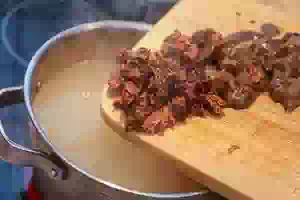 3. Отправить грибы в бульон. Дождаться первых бульков, уменьшить огонь и варить примерно 20 минут