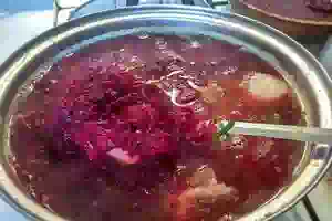7. Следом отправить в кастрюлю со свекольником остальные ингредиенты. Свекольник готовить ещё 1 час на маленьком огне.