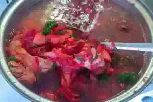 Свекольник на свиных ребрышках со свекольной ботвой